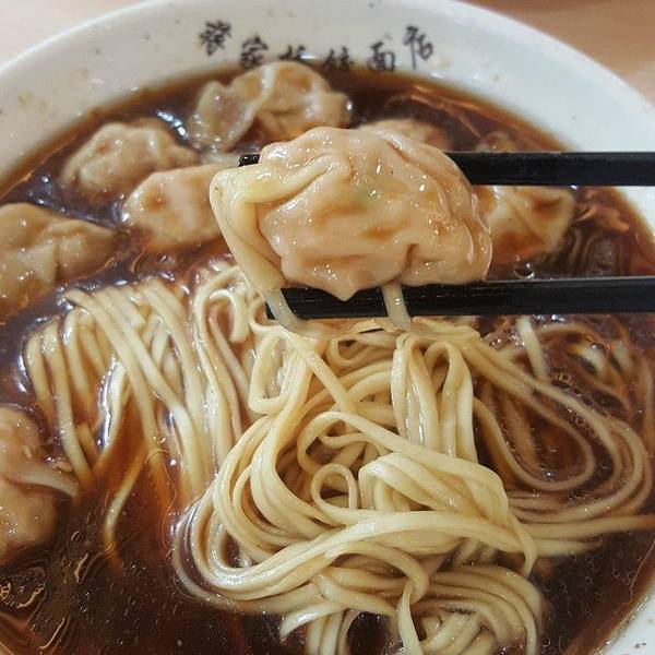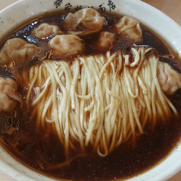 ...的云吞面,先喝了一口汤,因为它的汤颜色不是白色的,类似于苏州的红汤面,味道不错,很鲜,汤很浓稠
