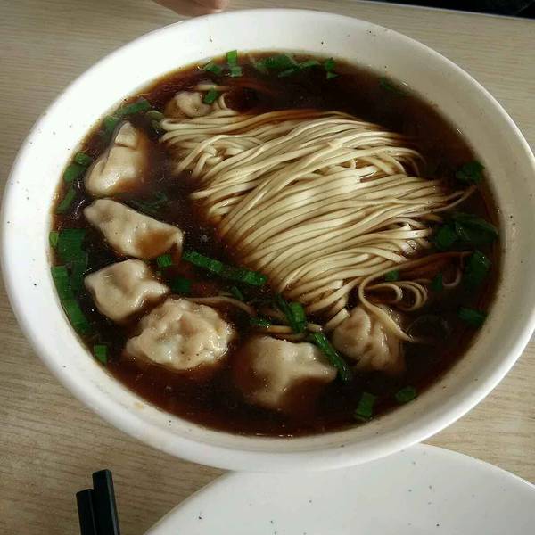 - ...的云吞面,先喝了一口汤,因为它的汤颜色不是白色的,类似于苏州的红汤面,味道不错,很鲜,汤很浓稠