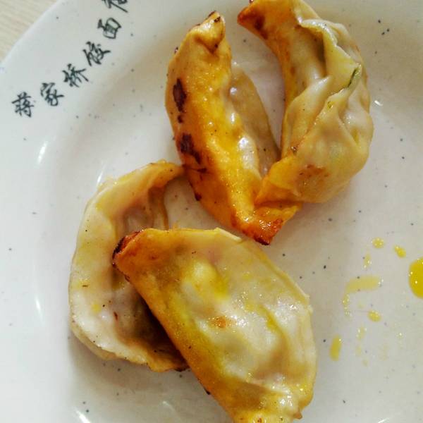 这里的大馄饨和苏州有很大不同,皮和馅更结实不容易烂,而馄饨汤是放了酱油的,一股很浓的胡椒和蒜泥味,来扬州的时候恰逢降温,一碗热腾腾的馄饨下去,肚子里热乎乎的,外面的冷风都不怕了。煎饺一般
