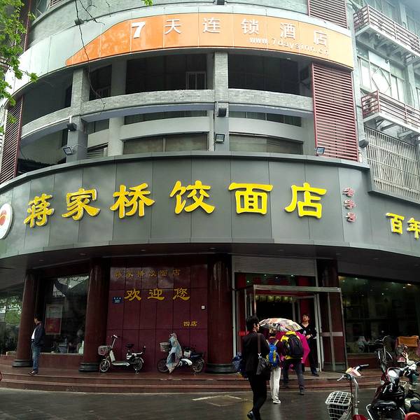 - 一直走到头出东关街对面就有一家百年老店蒋家桥饺面店,这家店招牌很大、人气很旺,里面的美食也很多...