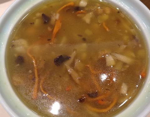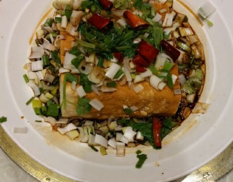 据说这里是必打卡的地方,我们把晚饭订在了这里。大厅环境很好,芦花鸡鲜嫩入味,冻豆腐白菜清淡可口,菜心绿油油地诱人食欲,最关键价格不贵,四个人167吃撑了。