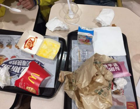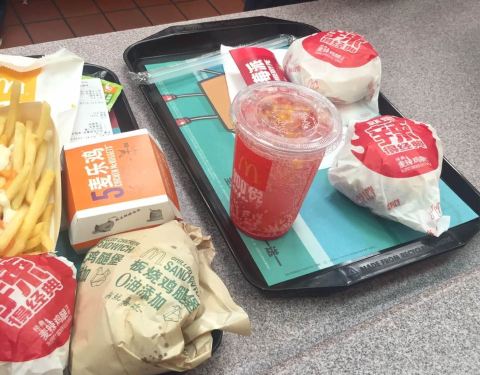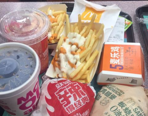 喜欢吃麦当劳,几个人吃了一大堆东西好饱哦晚上吃不下饭了