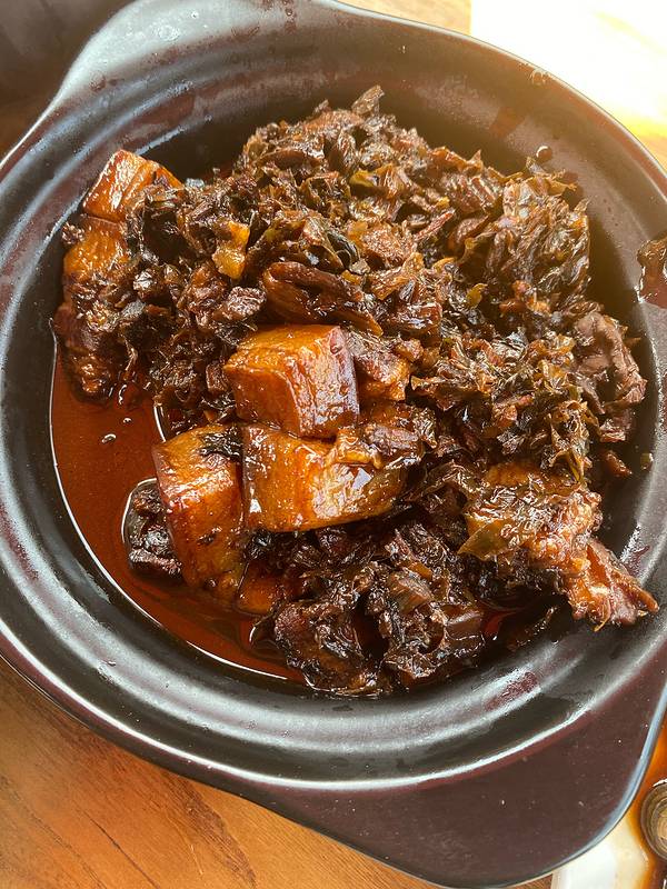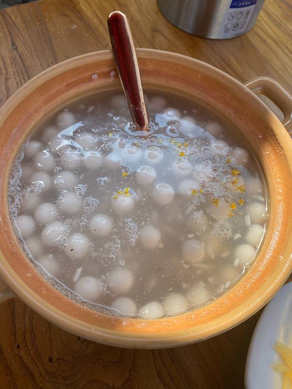 来到一处观景餐厅,二楼可观景,视野较好,总体来说价位稍高,但味道可,吃个欢喜糖醋里脊,比较嫩,但好像是鸡肉,不是猪肉竹网鸭,味道不错,小贵银耳汤是店里赠送酒酿圆子梅干菜烧肉,大同小异,肉不少夜幕将至,天边的云彩与夕阳相得益彰