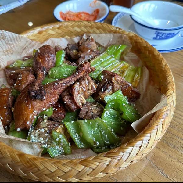 拍黄瓜:黄瓜爽脆,桌桌赠送。炒螺蛳:桌桌赠送。 小米糕:微甜,桌桌赠送。 竹网鸭:78元/份,桌桌必点菜,油炸的鸭子酥脆,香香,好吃。 雨曼白斩鸡:58元/份,白斩鸡中规中矩,蘸料特别赞! 石锅蟹黄豆腐:48元/份...