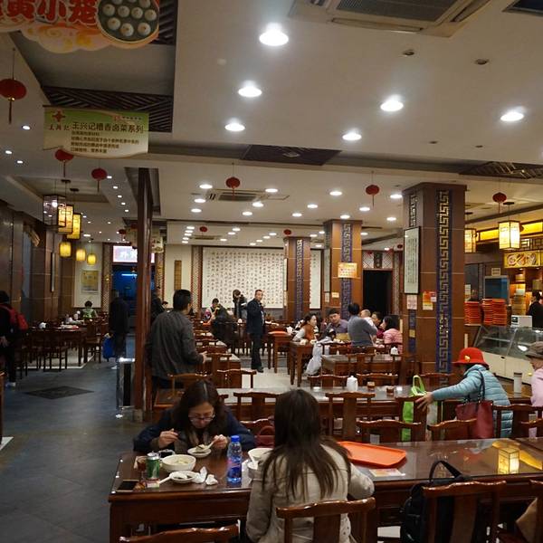风味厅大众厅有些游客会在王兴记买一些包装好的特色小吃带回去送给亲朋好友,在入口处的地方就有买,在大众厅里也有卖,例如生的小笼、豆腐干、酱排骨等等。汤包是无锡的特色小吃,王兴记是一家老字号的餐厅,因此汤包的味道也是最正宗的,一份鲜肉汤包是10元,一份是4个,我们点了2份,或许是王兴记不担心他们家的汤包没人买的原因,汤包都是蒸好一段时间了,如果你只买一份的话,服务员会给你一个碟子,然后拿4个放在碟子里,如果是买2份的话,才会给你一个蒸笼。无锡汤包和上海汤包的口感不一样,无锡汤包的汤汁会带一些甜味,我个人还是比较喜欢吃带一点甜味的无锡汤包,不过上海汤包的皮很薄,而王兴记的汤包皮很厚,已经接近于烧卖的皮子了,所以口感就欠佳了点。王兴记是以馄饨起源的一家餐厅,所以馄饨是王兴记的特色小吃,三鲜馄饨是10元一份,馅料为猪肉、虾仁和鸡蛋,馄饨汤底的辅料是豆干,馄饨的性价比还是可以的,毕竟是老字号餐厅,味道也不错,馅料很厚实,汤底也很鲜。总体来说,王兴记的性价比一般,游客吃的是名气,是历史,王兴记的鲜肉小笼口感一般,不过三鲜馄饨味道还是不错的,在这里还能买一些无锡特产。