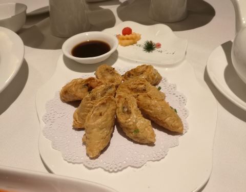 点餐方便,勾选自己喜欢的菜品。点了茉莉花茶,香香的;牛百叶,适合非重口味;葱油饼,松松软软;点的虾肠粉没了,换了虾饺皇,18元4个,透明的皮,粉粉的虾,馅量足足,味道清淡鲜美