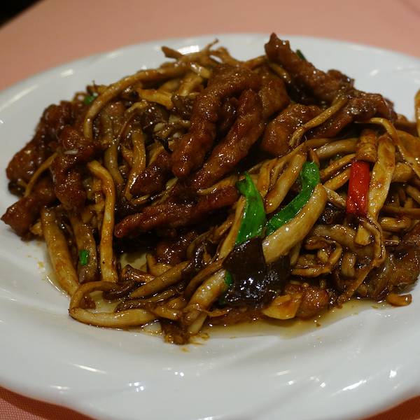 茶树菇牛柳,茶树菇有嚼劲而且很入味甜甜的,不知道是不是炸了以后再抄的,牛柳相对逊色一些