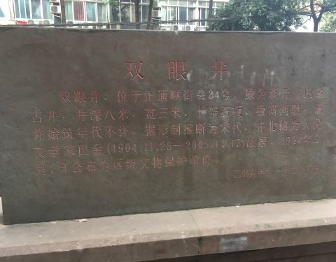 天府之国四川成都市正通顺亍“双眼井”。是成都巿青羊区文物保护单位。 【景色】与文殊院、文殊坊和巴金故居连成一片, 【趣味】形成文化、餐饮,旅游区域! 【性价比】都是免费游览。