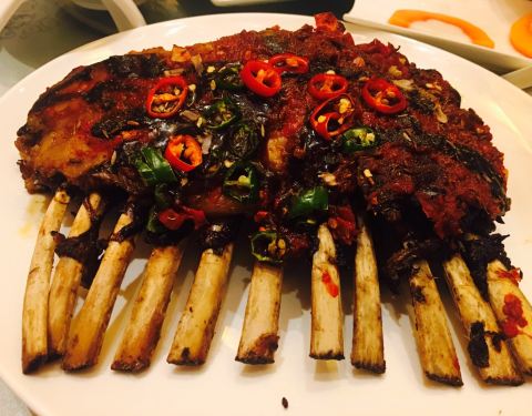 五星酒店 环境自然不用多说 说说菜品 不是想象中的江南口味 咸鲜甜辣 味道偏重 羊排上来的有点儿晚 但已经足够惊艳 厚厚的肉上面一层厚厚的辣椒 滋滋泛着香气 咬一口下去外酥里嫩 回味悠长