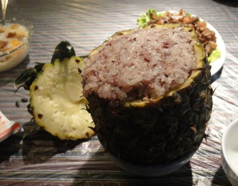吃了顿傣家竹楼,觉得里面的菠萝饭还是不错滴,只是别吃烤鱼了,我们等了半个多小时,而且味道SOSO。 - 晚饭是在剧院旁边的傣家竹楼,味道也是一级棒!香茅草烤鱼,五花肉,菠萝饭等等都让人不禁回味……