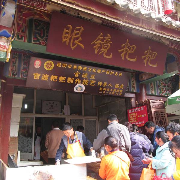 五一带小朋友到昆明来玩,这次打算就在市区,周边游就算了。官渡古镇第一次来,古镇最里面金刚塔哪个广场旁边的小巷子就是这家名声在外的眼睛粑粑了,店很小,来头确很大,啥子非物质遗产,文化传承人名头一大堆...五一带小朋友到昆明来玩,这次打算就在市区,周边游就算了。官渡古镇第一次来,古镇最里面金刚塔哪个广场旁边的小巷子就是这家名声在外的眼睛粑粑了,店很小,来头确很大,啥子非物质遗产,文化传承人名头一大堆,管他这些,东西好吃才最重要。买的人很多,排了一小会队。买了一个玫瑰馅料的粑粑,其实给我感觉就是锅盔,不过味道真心还是不错,面皮很酥而且香,馅料搭配的刚刚好,玫瑰花的香甜能跟面皮很好的融合在了一起,真心味道不错,而且份量很足,价格还便宜。