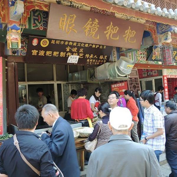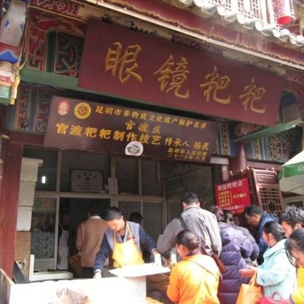 如果要说起吃的,在官渡古镇这“一亩三分地”里,当然是著名的“官渡眼镜粑粑”当仁不让地拔得头筹啦!胜在名副其实,味道纯美,口感绵香,物美价廉。大众美食人人爱呀!!眼镜粑粑的铺子位于官渡古镇里的金刚塔...如果要说起吃的,在官渡古镇这“一亩三分地”里,当然是著名的“官渡眼镜粑粑”当仁不让地拔得头筹啦!胜在名副其实,味道纯美,口感绵香,物美价廉。大众美食人人爱呀!!眼镜粑粑的铺子位于官渡古镇里的金刚塔正对着的那条街口,从金刚塔向街道一望,哪里聚的人多,那里多半就是的了(聚众它为的不算)!去官渡古镇旅游,最不应该错过的就是这里的“眼镜粑粑”了,多买几个带在路上当零食都好吃呀!