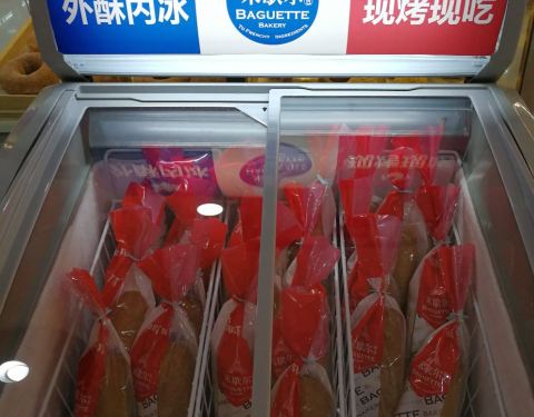 因为大学城附近只有该面包店算是比较大的品牌店,因此来此购买面包的客人异常多,生意非常好,我们来的时候已经比较晚了,基本上柜台上的各式面包都卖空了,只剩下不多的品种,看起来非常的贫瘠,好在女票喜爱的欧包大部分人都不喜欢,因此我们来到的时候这里还有不少,另外还有一些吐司和奶酪面包,于是我们就买了一份欧包和奶酪面包。
