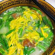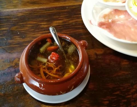 昆明当地人推荐的老店。价格挺贵的,我们两人要了一份进士过桥米线,送一小锅蒸汽鸡,32元。味道还行,不算特别的东西了。