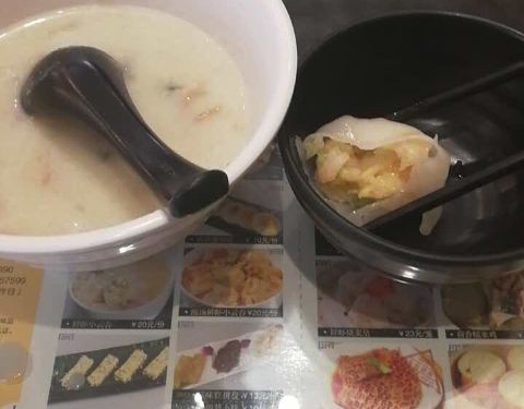 流沙包很甜很好吃,皮蛋瘦肉粥和山药粥味道也很好,绝味鸭肠辣了点。