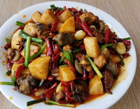 红豆园青云街店是以云南菜为主的一个餐厅,饵块鸡很大一盘端上来,饵块是切成小四方块的,和鸡一起用辣椒等…