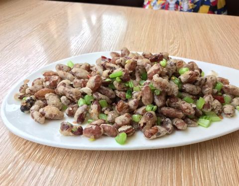 红豆园青云街店是以云南菜为主的一个餐厅,饵块鸡很大一盘端上来,饵块是切成小四方块的,和鸡一起用辣椒等佐料炒出来,看起来红透鲜亮,很诱人的样子。凉白肉煮的火候刚好,又不会很腻,配的蘸水味道适中。这里非常的方便,交通便利。上菜速度相当的快,生意非常的好,环境一般,但是一般情况下这里的位置都是爆满的。甚至还会出现排队等位子的现象。