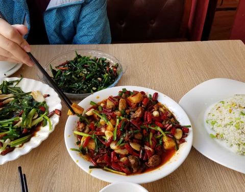 不错不错。比较有特色,性价比也很高啊。我这种吃货都吃不完。芝麻菠菜口感很丰富,青椒菌炒饭好吃而且不咸!饵块鸡饵块太饱了→_→没法多吃啊