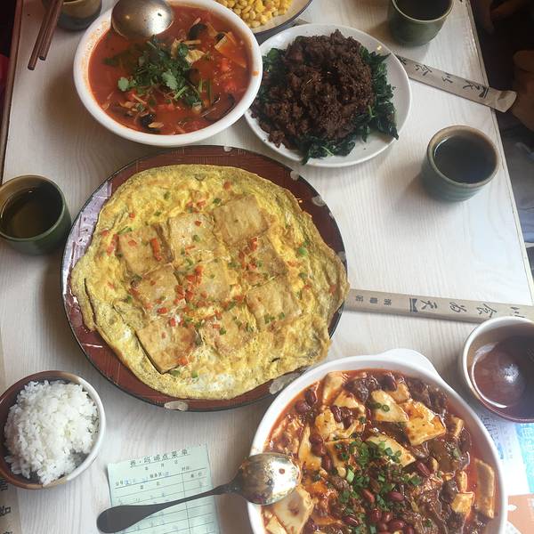 打卡的人很多,性价比较高,薄荷牛肉很好吃,一点都不韧,土豆丝就比较家常,但是那里的土豆好吃,洋芋是经典,上桌快,份量大,怪不得人那么多。