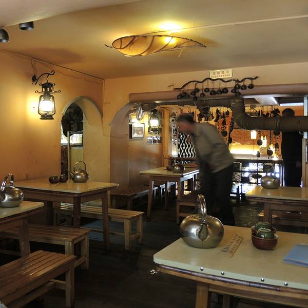 总体来看,石屏会馆还是很值得去参观一下的,绝对正宗又完整的西南风格的建筑,就令人赞叹不已了。现在这里还是一间很正宗的云南风味餐厅,只是价格和建筑层次成正比,消费应该很够档次的,我们就不在这里品尝什...总体来看,石屏会馆还是很值得去参观一下的,绝对正宗又完整的西南风格的建筑,就令人赞叹不已了。现在这里还是一间很正宗的云南风味餐厅,只是价格和建筑层次成正比,消费应该很够档次的,我们就不在这里品尝什么了 。离开石屏会馆时已近中午,虽然不在会馆用餐,也该找个地方喂喂肚子了呀 !不用着急,我们早有准备,虽然不能“高大上”,但可以“小资”一下嘛。东转西拐的,我们溜达到了文化巷,这里有很多“小资情调”的餐馆和酒吧,我们选择了“吗哪”,一间在网上颇有知名度的餐厅,看看昆明的“小资”会是怎样的一个调调呢?