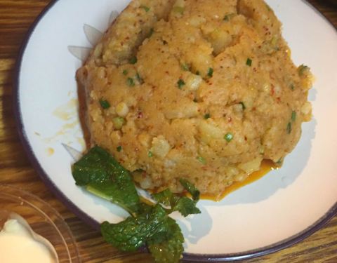 我们选择了“吗哪”餐厅。这里分上下两层,拥挤而热闹,主要是云南和四川风味的家常菜。人气很旺,据说到饭点时还要等位的。我们来的早,就直接就座了,点了几个小菜。强烈推荐这个奶羹啊!!!冰冰凉凉,上面有...我们选择了“吗哪”餐厅。这里分上下两层,拥挤而热闹,主要是云南和四川风味的家常菜。人气很旺,据说到饭点时还要等位的。我们来的早,就直接就座了,点了几个小菜。强烈推荐这个奶羹啊!!!冰冰凉凉,上面有一些杏仁碎屑,奶香浓郁,但是又不像双皮奶那么腻人,口感更轻盈爽滑。反正我很喜欢吃! 云南跟四川风味还是相近的,所以我吃起来觉得很亲切。只是以前从来没有吃过薄荷入菜的,这次点了薄荷酥红豆和风味牛肉,里面的薄荷都好好吃。特别是薄荷酥红豆,红豆软糯香甜,薄荷酥脆也带有清香,是我在昆明最回味的一道菜了。