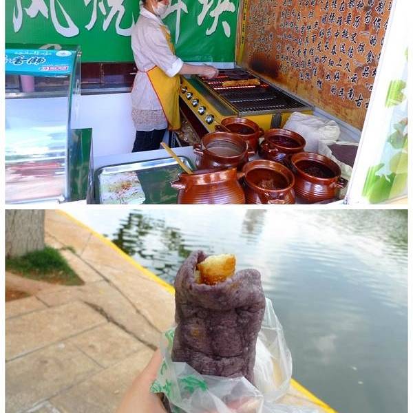 分别是百米,紫米饵块夹油条加甜辣酱,本来气候就很干,吃这个更干,不太适合广东人的口味,可以买一条尝尝味道吧。