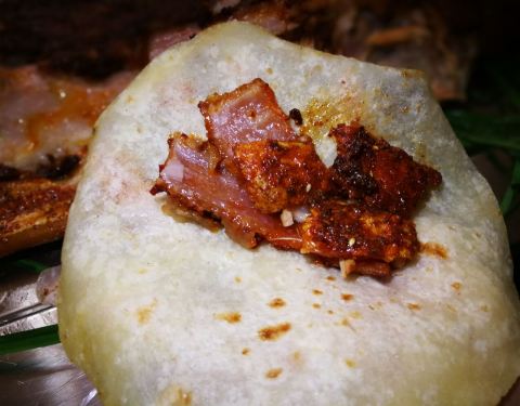 ...的广西巴马的乳猪,用锡伯族的方式考,加了云南的辣椒粉,皮脆肉嫩,辣口不辣心,怎一个好吃才能形容