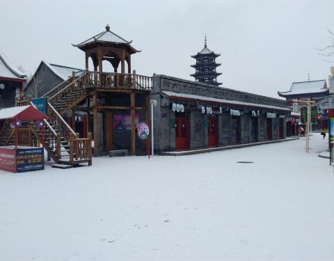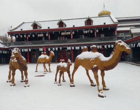 新疆昌吉回民小吃一条街,坐落在昌吉市建设北路北公园东北处,为两层框架结构,布局为四合院,青砖绿...
