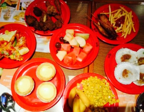 这种自助就是没吃的但是一吃还是吃好多吃了还一定会后悔那种????♀️????♀️。披萨??饼底都特别厚,上面只有一点点,榴莲披萨刚出来还可以只是上面料实在是太少了都吃不到一点点榴莲果肉。薯条??还可以,多多放番茄酱,反正这种细的薯条我觉得都一样,粗一点口感还可能好一些,太细了吃到的都是番茄酱了。炸鸡??还可以吧,热热的都还行,鸡腿就不那么有味道而且肉特别老。蛋糕??不知道应该怎么描述,一方面真的没什么可吃的,另一方面上面的奶油品质很好,不甜不腻消泡超快,应该是淡奶油打出去的,有点惊喜。寿司??真的超级难吃,超级超级,本年度最难吃寿司,还没我自己捏的白米饭好吃。铁板烧饸络酸辣粉真的超级咸,这样很让人怀疑材料是有多不新鲜啊。反正一定会后悔的,以后都不要去这样的自助了,贵点的自助总会有一个能吸引人的地方,然而这个就??。