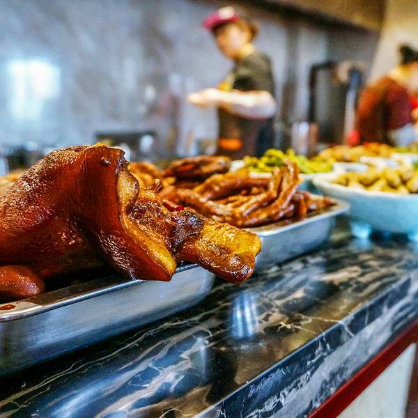 一家汇集了各色本地小吃的平价美食店, 继续为江西菜疯狂打call! 碱水粑的做法和我们的炒米粉差不多,不过“粑”会更有劲道, 加了芹菜、红椒、鸡蛋等作为辅料,当主食作小吃皆可。 杂酱粑每个都份量十足,造型类似饺子,但外皮更厚,很有韧劲, 里面的内陷是杂菜,辣辣的很开胃。 玉米排骨瓦罐汤比较清淡,正好解油腻,平衡一下咸咸的口感。令人垂涎欲滴的各色小吃忙碌的店员给江西菜比心碱水粑来江西不能错过的瓦罐汤杂酱粑