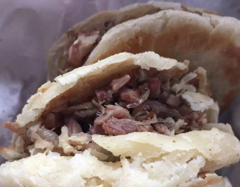 最开始在北大桥头,老爷子亲自制做,现做的火勺,夹上猪头肉,那是真好吃,好些年前就是牛B馆子,记得当时去打包火勺,最低多少个起做,而且单点火勺也不行,必须点一份他家的菜才可以-_-#不过还好当时买的他家自制的腊肠还挺好吃的~ 现在换了地点了干净多了,据说超级火爆,饭点屋子里挤满了人,表弟知道我喜欢这口特意排队去给我买回来的嘻嘻;火勺和对夹都是饼夹肉,区别是:对夹是夹熏肉,饼分层少一些,个头比火勺略大点;火勺是夹猪头肉,饼小而厚实,大小和做法都特别像南方的鲜肉月饼的饼皮,而且本身饼皮有椒盐的味道^_^ 老家的这个特色小吃做的相当不错,来这里一定要尝尝啊^_^,肉食爱好者千万不要错过!
