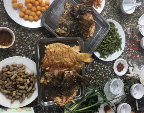 鱼很新鲜,钓上来直接就烤了,肉很嫩,鱼汤一般,就是吃个新鲜。