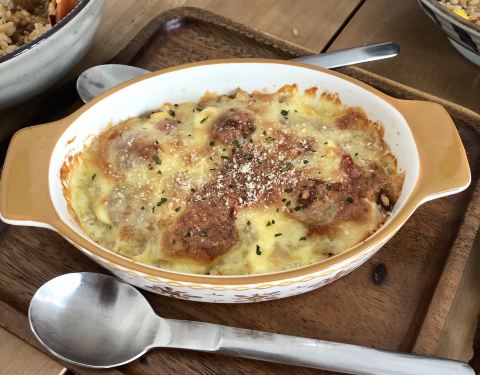 ...赶真的太太太可爱了~ 我们四个人点了一个香肠芝士焗饭,芝士非常多咸香的饭配上咸甜的芝士,我可以