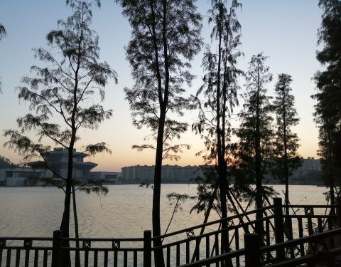 听音湖(西樵山下)――传统景区白云洞外面的免费人工湖景区,如今比旧湖面积扩大了一倍多,正在打造未来的商旅小镇“观心小镇”,但是目前人气比较冷清。