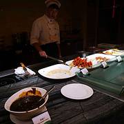毕竟价格摆在那里,肯定不能和三百一位的自助餐比,不过一样有长脚蟹、海鲜、现煎的牛排、鸡翅、现煮都的面点...周六用农行信用卡可以享受二免一,这家自助餐本来价位就不高,88元一大一小吃一餐晚饭也是很合算了。