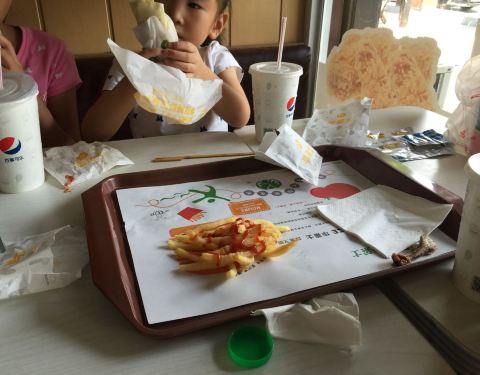带小孩来吃的,还可以,就是桌子没人收拾。