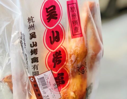 神奇的~顶着寒风排队排了差不多一刻钟。 来买的大都是本地爷叔。 烤鸡称好大小差不多都是1斤多,20几到30出头。 刚买好尝了第一口觉得咸。 反而是晚上微波后觉得好吃。入味且有嚼劲。肚子里塞了大葱和香菇,是老底子的做法。 下次去杭州,还是可以买一只~