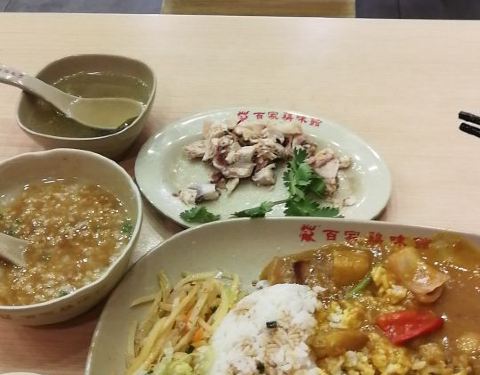北方人,百家鸡要的小份,比我在石家庄吃的好吃,全吃完了,鸡粥不敢恭维,也许吃不惯的原因,里面有硬硬的东西,吃起来感觉吃鸡骨头似的,咖喱牛肉饭是很给力,量足,口味还行。