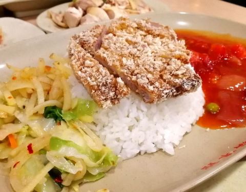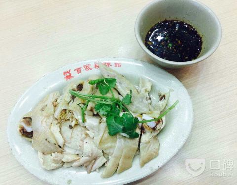 今天在杭州吃的是一家本地小伙伴们强烈推荐的老店,招牌是鸡,所以今天跟我们一起吃鸡,一桌子花了80左右,你们觉得贵吗?我觉得还可以哦!招牌百家鸡【口味】配有蘸料,单吃鸡肉味道有点淡,蘸着酱料是真的好吃!【口感】鸡肉比较嫩,不是很爱鸡皮的口感。【价格】11元(小盘)【推荐】★★★★☆蜜汁叉烧【口味】偏甜口,一点都不腻,配有一些花生米,味道很好。【口感】叉烧周围有点脆,中间是嫩嫩的,口感也很好。【价格】22元一份【推荐】★★★★★咖喱肉角【口味】咖喱的味道适中,肉馅里有蔬菜也不腻,很好吃。【口感】油炸过的,外皮很脆;肉馅也很足,好吃。【价格】7元一份【推荐】★★★★★叉烧薄饼【口味】甜咸口,味道不是很浓重,有些许叉烧丁。【口感】很软,有点黏。【价格】7元一份【推荐】★★★☆☆凉拌笋干【口味】没有太多调味料的味道,笋本身的味道很香,吃起来很爽口。【口感】凉菜系列,略脆。【价格】7元一份【推荐】★★★★☆ 茄汁猪扒饭【口味】茄汁的味道很好,猪扒蘸着茄汁吃很不错。配菜味道也可以。【口感】猪扒切条状,外酥里嫩;米饭不干。【价格】16元一份【推荐】★★★★★鸡粥【口味】咸口,不单单是一碗白粥,里面有肉末还有秘制调味料,口味很丰富。【口感】肉末是炸出来的,吃起来脆脆的,口感特别棒。【价格】3元一碗【推荐】★★★★★鸡爪【口味】单吃鸡爪并没有什么味道,蘸着之前百家鸡的酱料吃还行。 【口感】感觉一般般,没有什么特点。【价格】2元一个【推荐】★★☆☆☆【环境】快餐店形式,比较干净【服务】还可以【地点】(杭州)中山中路308号近开元路【tips】使用口碑8.8折券可优惠