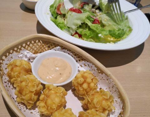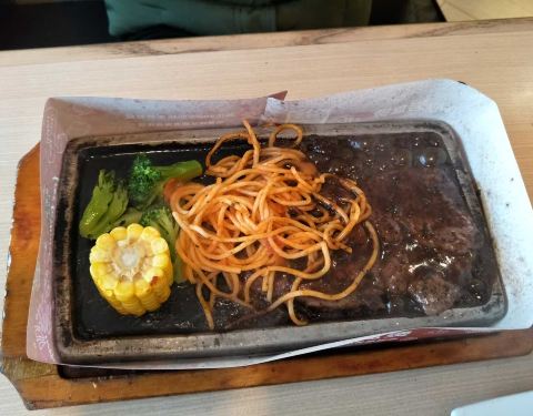半价买的餐饮券,牛排、甜品和色拉。牛排味道不错,煎得很嫩;凯撒色拉的生菜切得太大了,一口吃不进嘴里;水果色拉量太少,水果比较廉价;提拉米苏和抹茶雪域卖相和口感均可得满分。庆春广场店环境和服务都能获满分,就是没有免费停车政策,8元一小时着实贵了。