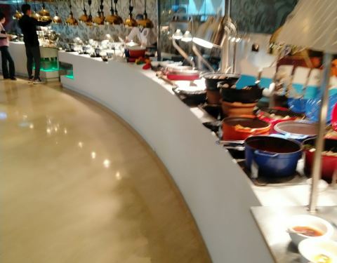 这家餐厅在杭州福朋喜来登酒店二楼,来用餐的大多是酒店的客人,午餐和晚餐也有外部客人和来参加某些活动论坛的客人。菜品很全,中餐,西点,还有煎饼等小吃,味道不错。