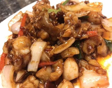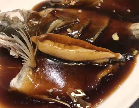 西湖醋鱼,杭帮菜的招牌之一。通常选用一斤多的草鱼进行烹制。烧好后浇上一层平滑油亮的糖醋,胸鳍竖起,鱼肉嫩美,带有蟹味,鲜嫩酸甜,强烈推荐。菜梗猪肝,这道菜是这家店的招牌菜。菜梗有嚼头,和猪肝一起酱爆,猪肝嫩,菜梗脆,炒在一起相互映衬,让我第一次感到猪肝是如此美味,强烈推荐。