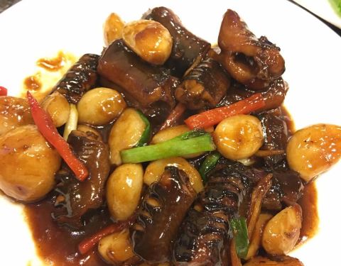 餐厅不大,因为下雨,客人没坐满。点了菜梗炒猪肝和汤爆黄蚬,片川,味道不错,肝尖软嫩,黄蚬咸鲜,2个菜都是味道比较足,非常好!但是菜量偏少,我们2个女生感觉没吃饱,又点了一个西湖醋鱼,没想到这道名菜感觉不是太好,鱼不进味,但是还好没有土腥味,糖醋汁太甜,几乎没有咸味,大概这就是杭邦菜的特点,不习惯这个口味的慎点。