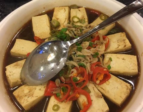 菲乐餐厅 的菜梗炒猪肝在各方面都足够称为招牌菜:点菜之后三十秒热力十足上桌,猪肝鲜嫩,菜梗爽脆,酱香带甜的口味简直就是米饭杀手。炒菜里的海鲜炒米粉也很好吃,锅气足够而且不油,只是海鲜吃起来和米粉相比简直失格。番茄梭子蟹豆腐锅看着表面两只梭子蟹唬人,实际上蟹的味道基本出到了汤里,螃蟹纯粹给人咬壳为乐的;反而番茄汤里有香菇和螃蟹的味道,喝起来比坊间其他番茄汤层次丰富太多了,只可惜汤量太多,喝到后面也是强弩之末。咸鱼毛豆蒸肉饼相比之下就纯搞笑了,加了许多酱油下去蒸不仅卖相让人扼腕,入口也不知咸鱼咸还是肉饼更咸。