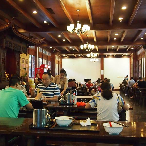 食客大多数是慕名前来,也有不少灵隐寺的香客……面馆里的人很多,尤其是午餐时间排队
