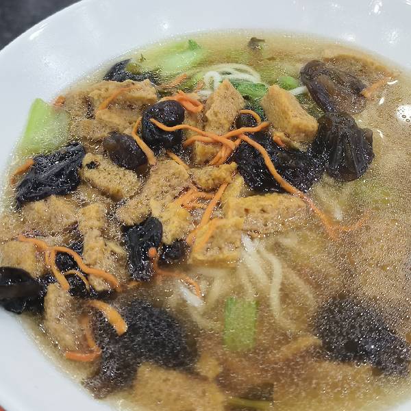 罗汉面上的香菇个个似铜钱大小又香又鲜,素馄饨是大小均匀适中个个芯料实足清香留口中。这真是:素斋精作素食,出品口味绝佳,凡夫俗子净化,立地成佛可期。
