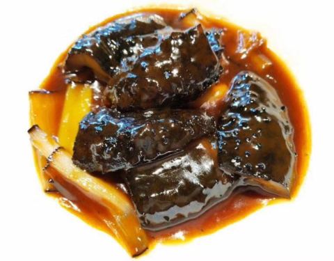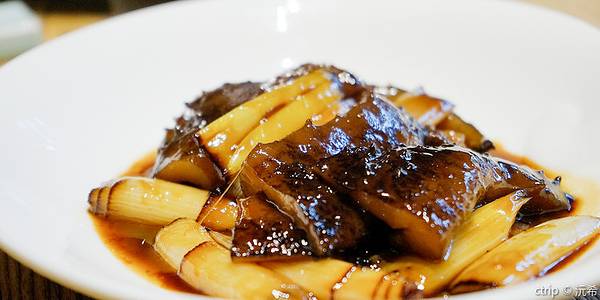 - 葱烧海参,该店的特色菜品之一,海参的口感,不但十分滑糯,而且颇为入味