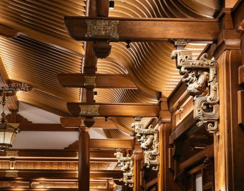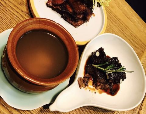 由古村落改造的五星级酒店法云安缦内,被树木和青山环抱,装潢古色古香,不用预约也可以直接步入餐厅用餐。午餐、晚餐提供杭帮菜,下午有下午茶,餐点摆盘精致,虽然价格不菲,但服务和味道都是五星级的。