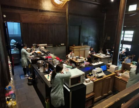 餐厅位于由古村落改造而成的星级酒店之内,周边青山环抱,环境清幽。内部装潢古色古香,木质家私与禅风花艺营造素雅怡人之感。这里以创意江南菜为主,严选优质食材烹制,精美的摆盘和口味都足以令人称赞。