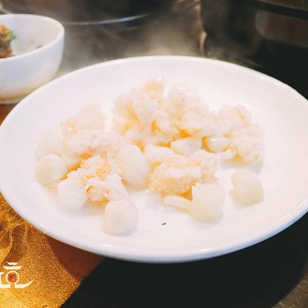 我们点了这家主打毋米粥水火锅,配虾滑+白贝,顺德双皮奶,苦瓜汤,干炒牛河。